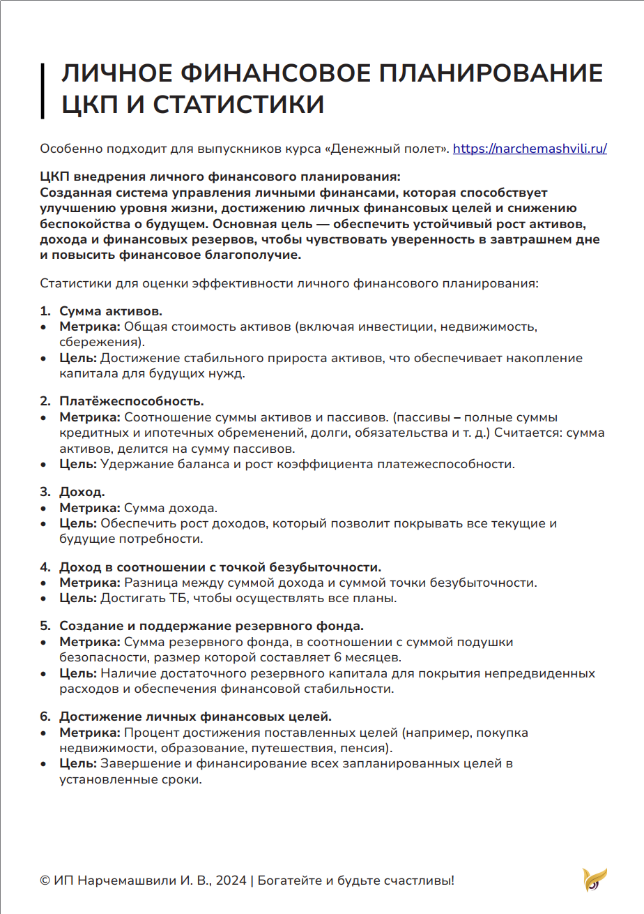 Статистики для оценки эффективности личного финансового планирования